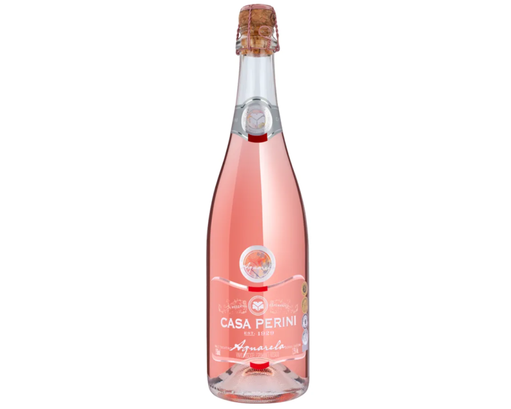 O Espumante Casa Perini Aquarela Moscatel Rosé é um espumante brasileiro adocicado e aromático do Vale Trentino, Serra Gaúcha, conhecido pelo seu equilíbrio entre açúcar e acidez e pela sua versatilidade na harmonização.