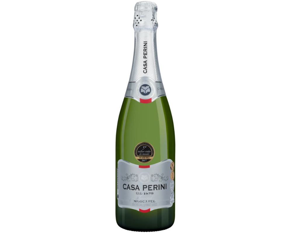 O Casa Perini Moscatel é um espumante doce, frutado e floral, com notas de pêssego e jasmim, feito com uvas Moscatel da Serra Gaúcha, apresentando cor amarelada e borbulhas finas, sendo equilibrado pela acidez e fresco, ideal para harmonizar com sobremesas leves, carnes suínas e queijos. Com baixo teor alcoólico (cerca de 7,5-8%), é leve, vibrante e premiado, com um sabor adocicado equilibrado que o torna muito popular.